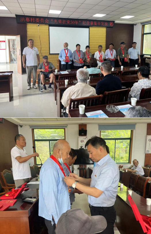 活動(dòng)伊始,洪幕村黨委書記親自為7位老黨員頒發(fā)“光榮在黨50年”紀(jì)念章,致以崇高的敬意,對(duì)他們表示熱烈地祝賀,感謝他們多年來無私奉獻(xiàn),對(duì)他們的付出深表感激。他們始終以人民利益為重,默默無聞地為人民服務(wù)。并鼓勵(lì)眾多青年黨員向他們學(xué)習(xí),向他們致敬,同時(shí)也要以他們?yōu)榘駱樱e極投身到社會(huì)主義事業(yè)中去,為實(shí)現(xiàn)中華民族偉大復(fù)興的中國夢(mèng)貢獻(xiàn)自己的力量。
