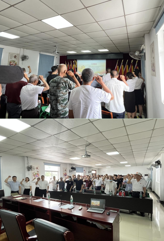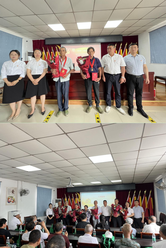 在優(yōu)秀黨員孫喬的帶領(lǐng)下,全體退役軍人黨員以及高舉右手,面對(duì)鮮紅的黨旗,莊嚴(yán)宣誓。句句鏗鏘的誓言,體現(xiàn)了黨員同志對(duì)中國(guó)共產(chǎn)黨的無(wú)限忠誠(chéng),堅(jiān)定了入黨使命、奮斗初心。隨后,社區(qū)為退役軍人黨員們發(fā)放“在黨五十周年”紀(jì)念章,為生日同時(shí)在七月的黨員們發(fā)放鮮花,激勵(lì)大家學(xué)習(xí)先進(jìn)、爭(zhēng)當(dāng)先進(jìn)、趕超先進(jìn),牢記囑托、感恩奮進(jìn),在新征程上推動(dòng)社區(qū)工作高質(zhì)量發(fā)展。