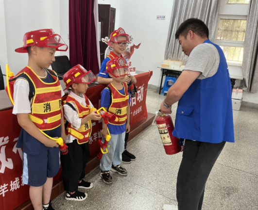 隨后,來自社區(qū)民兵王力同志現(xiàn)場邀請帶孩子來的居民,讓孩子們上臺參與“我是消防小能手”消防安全互動活動,民兵王力為孩們講解包括滅火器的種類、如何使用滅火器、火災地震如何逃生等內(nèi)容,王老師以生動形象的生活例子向小朋友們進行講解,引導小朋友們在日常生活中要養(yǎng)成良好的安全習慣,并提醒小朋友們生活中不玩火、不玩電器。最后孩子們通過消防安全有“畫”說進行展示,表達自己對消防的感知、理解以及對消防員滅火場景的再現(xiàn),以繪畫的形式展現(xiàn)出來,在消防安全文化的熏陶中,進一步提高了孩子們對消防安全的認知。