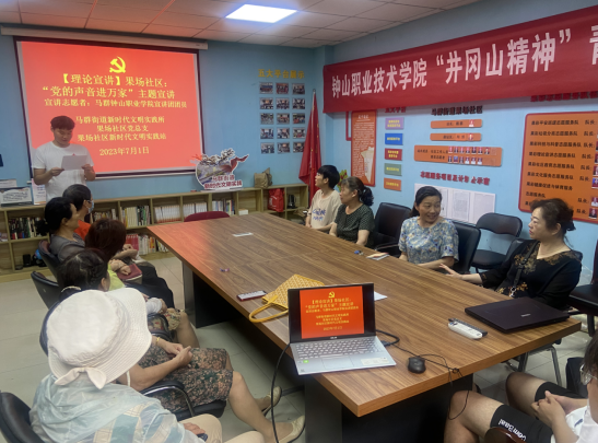 2023年7月1日,南京市棲霞區(qū)馬群街道果場社區(qū)黨總支共建單位馬群鐘山職業(yè)技術(shù)學(xué)院理論宣講團,應(yīng)邀參與了馬群街道新時代文明實踐所與果場社區(qū)新時代文明實踐站共同舉辦的“黨的聲音進萬家”主題宣講,社區(qū)黨員、居民代表、志愿骨干對本次宣講進行了深刻學(xué)習(xí)。