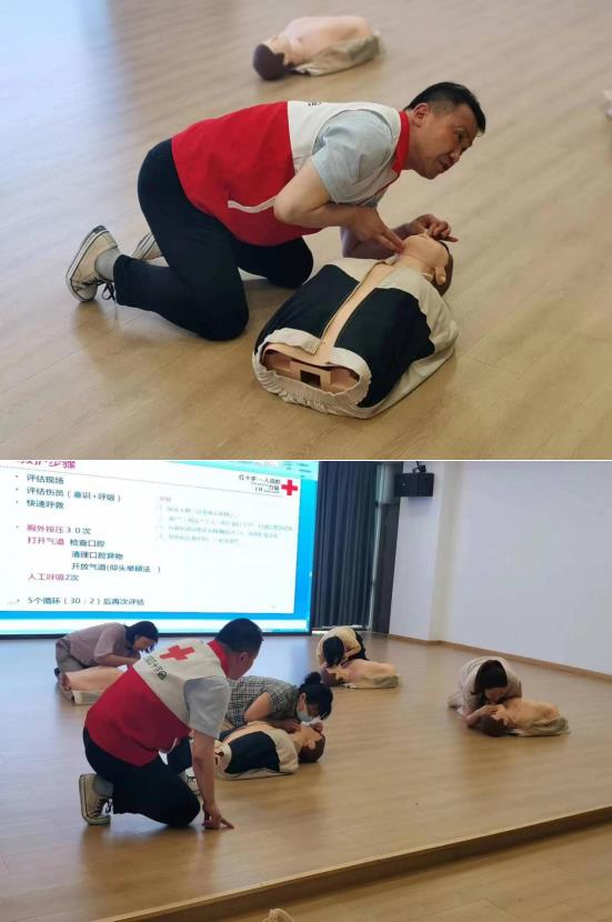 培訓(xùn)分為理論學(xué)習(xí)、操作練習(xí)和考核三個環(huán)節(jié)?,F(xiàn)場,紅十字會工作人員向?qū)W員們闡述了應(yīng)急救護知識的必要性,詳細講解了突發(fā)狀況下的心肺復(fù)蘇、AED操作方法、氣道異物梗阻等相關(guān)急救知識,并安排學(xué)員輪流進行實踐操作,及時發(fā)現(xiàn)和糾正學(xué)員的失誤,彌補不足之處。
