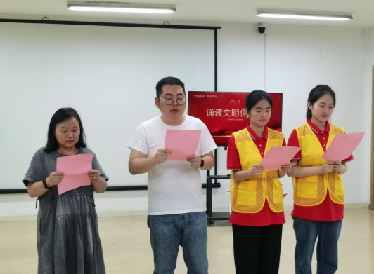接下來(lái),在場(chǎng)人員和志愿者共同誦讀文明倡議書(shū)。用朗讀的方式號(hào)召大家攜手同心,從點(diǎn)滴做起,不亂扔垃圾,創(chuàng)造整潔的生活環(huán)境。遵守交通規(guī)則,維護(hù)良好的城市秩序。文明有寧,一起為南京助力、為棲霞加油!
