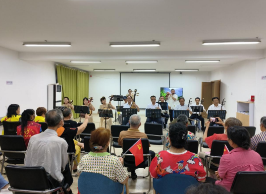 最后壓軸出場(chǎng)——牡丹民樂(lè)藝術(shù)團(tuán),經(jīng)過(guò)多次集中演練,當(dāng)晚聚精會(huì)神地演奏經(jīng)典紅歌《繡金匾》、《再唱山歌給黨聽(tīng)》,樂(lè)聲中飽含著對(duì)偉大的中國(guó)共產(chǎn)黨的無(wú)限熱愛(ài)。本次文藝活動(dòng)暨“慶七一”全民閱讀活動(dòng)不僅激發(fā)了黨員群眾對(duì)傳統(tǒng)文化和民俗文化的興趣,營(yíng)造了濃厚的文化氛圍,也涵養(yǎng)了社區(qū)居民精神文化,使社區(qū)文化建設(shè)活動(dòng)更加豐富。