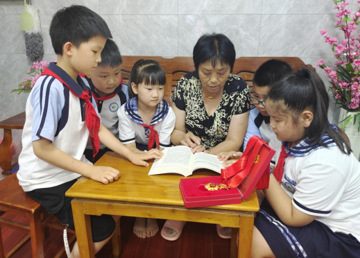 隨后,小學(xué)生們走進(jìn)其他老黨員家中送書,老黨員們拿出“在黨50年紀(jì)念章”給孩子們展示,兩代人之間親切攀談,孩子們對(duì)老黨員為國(guó)家作出的貢獻(xiàn)表示至高的敬意和感謝。
