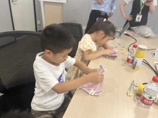 在“點(diǎn)鈔大賽”環(huán)節(jié)中,工作人員給大家講解并示范了最常見(jiàn)的點(diǎn)鈔方法。小朋友們一個(gè)個(gè)拿著點(diǎn)鈔專用練習(xí)券躍躍欲試。“左手夾著紙鈔,食指抵住,大拇指輕輕扶著紙幣,右手大拇指和食指動(dòng)起來(lái),就可以點(diǎn)鈔了。”工作人員邊示范點(diǎn)鈔的手法、邊糾正大家的點(diǎn)鈔姿勢(shì)。點(diǎn)鈔大賽最后,工作人員向“小小銀行家們”頒發(fā)了點(diǎn)鈔小能手獎(jiǎng)品,鼓勵(lì)小朋友們積極參與此類科普宣傳活動(dòng),在實(shí)踐中學(xué)習(xí)知識(shí)、開拓眼界。