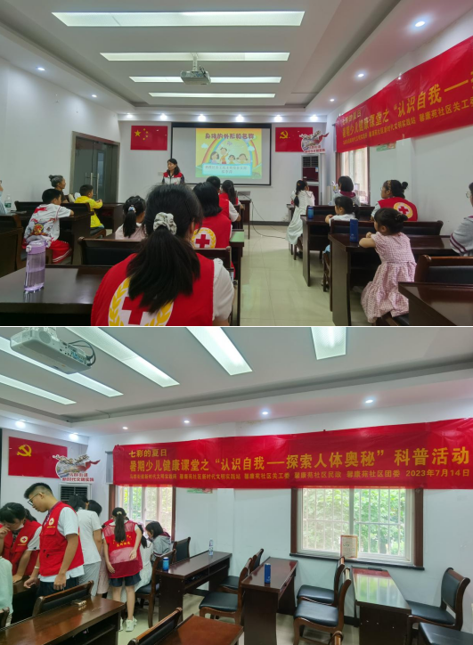 為了提升小朋友們的認(rèn)知能力,探索身體的奧秘,促進轄區(qū)未成年人之間交流,2023年7月14日上午南京市棲霞區(qū)馬群街道馨康苑社區(qū)新時代文明實踐站聯(lián)合馬群街道新時代文明實踐所、社區(qū)關(guān)工委、社區(qū)民政、社區(qū)紅十字會開展了暑期少兒健康課堂之“認(rèn)識自我——探索人體奧秘”科普講座活動,本次活動由棲霞區(qū)紅十字會志愿者為青少年科普講解。