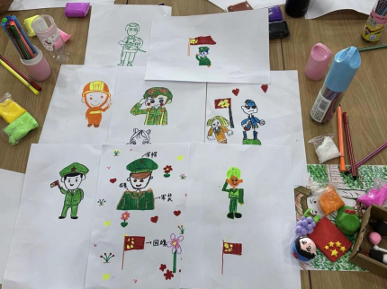 上午9點(diǎn)國防手工藝活動(dòng)開始,暑期社會實(shí)踐調(diào)研團(tuán)成員朱嘉偉擔(dān)任此次活動(dòng)主持人,主持人根據(jù)此次活動(dòng)的內(nèi)容將12名小朋友分成3組,活動(dòng)開始,暑期社會實(shí)踐調(diào)研團(tuán)志愿者為小朋友們發(fā)放畫筆與繪畫紙張,小朋友們利用不同顏色的畫筆,畫出他們心目中的“軍人形象”,20分鐘后,每個(gè)小朋友紛紛展示他們的繪畫作品,并說出他們的想法和心目中的軍人是什么樣的,隨后,每個(gè)小朋友自己動(dòng)手發(fā)揮想象力和創(chuàng)造力,利用超輕粘土材料做出自己心目中的軍人、坦克、飛機(jī)等模型,每個(gè)手工模型的背后,都飽含著兒童對現(xiàn)代國防軍事的憧憬和熱愛。