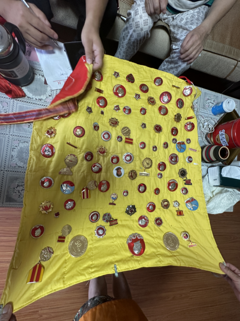 在抗美援朝參戰(zhàn)老兵曾元山老先生家中,社區(qū)退役軍人服務(wù)站副站長陶博同志與曾老進行了親切交談,了解了曾老服役期間的精彩往事,感受到老兵對軍隊的熱愛與保家衛(wèi)國的壯烈情懷,回憶過往,真摯而熱烈的情感猶在。大家仔細端詳曾老的紀(jì)念徽章及證書,這些都是他以往崢嶸歲月中付出青春熱血所得,每一枚徽章的背后都有著厚重感。