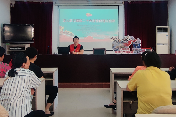 為落實(shí)學(xué)習(xí)宣傳貫徹黨的二十大精神,深刻領(lǐng)會(huì)和準(zhǔn)確把握報(bào)告提出的一系列新觀點(diǎn)、新論斷、新思想、新要求,近日,馬群街道新時(shí)代文明實(shí)踐所聯(lián)合南京市棲霞區(qū)馬群街道潤康苑社區(qū)新時(shí)代文明實(shí)踐站開展“深入學(xué)習(xí)理解二十大報(bào)告的理論創(chuàng)新”黨的二十大精神理論宣講活動(dòng),社區(qū)黨員、工作人員及居民30余人參加。