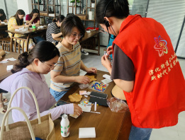 活動最后,志愿者引領大家走進馬賽克的藝術世界,志愿者先介紹了制作杯墊所需使用的工具、材料、制作步驟以及注意事項。隨后大家按照步驟,通過發(fā)揮自己的想象力和創(chuàng)造力,擺出獨具風格的馬賽克杯墊造型。然后大家在縫隙里填滿半透明填縫劑,用海綿清除石頭表面殘留的填縫劑。一個個普通的杯墊在婦女們的巧手下被賦予了新的生命。