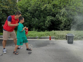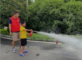 社工向在場(chǎng)小朋友們科普滅火器的種類、使用方法及不同種類滅火器的使用場(chǎng)景。在社工的指導(dǎo)下,他們學(xué)會(huì)了正確站姿、正確握持滅火器以及撲滅火源的技巧。