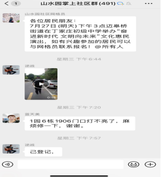 “溫馨提示:請未辦理門禁卡的居民可盡快到物業(yè)辦公室辦理。”“便民義診活動來啦,請大家積極參與!”“退休工人體檢開始了。”……在南京市棲霞區(qū)邁皋橋街道山水園社區(qū)掌上云微信群內(nèi),網(wǎng)格員及時發(fā)布消息,讓居民第一時間收到相關(guān)信息,給居民提供了一個高效接收信息的渠道,同時社區(qū)居民可以通過掌上云社區(qū)反映生活相關(guān)的問題。社區(qū)定期組織線上線下議事協(xié)商,收集群眾的意見活建議,幫助居民排憂解難,逐步實現(xiàn)社區(qū)治理共治、共享,激發(fā)社區(qū)治理活力。