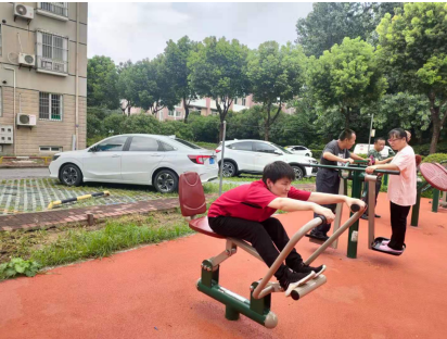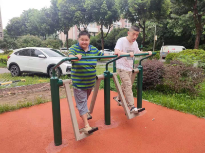 活動開始后,專委帶著殘疾人之家的學員開展日常健身活動。在他們的帶領(lǐng)下,大家進行了散步、慢跑、健身器材使用等鍛煉,健身活動中他們?nèi)耐度?,努力完成,不僅鍛煉了身體也促進了彼此間的感情。