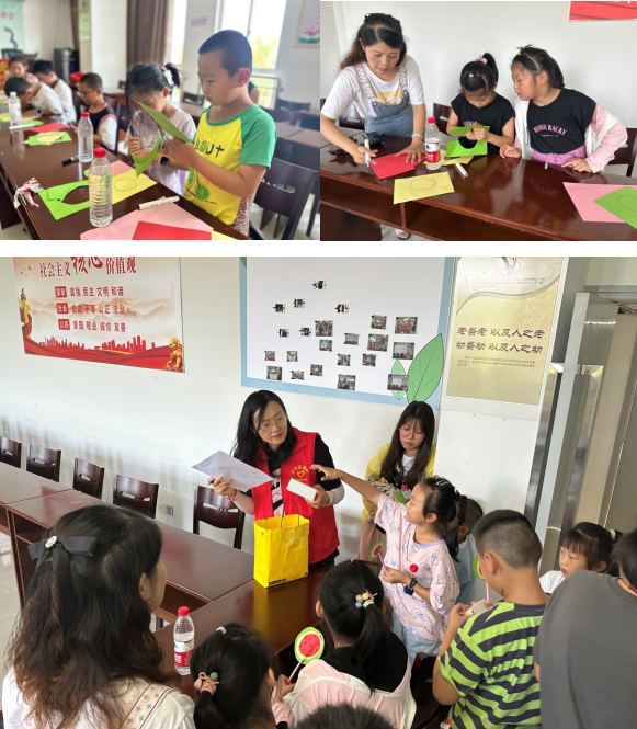 一把西瓜扇,巧手齊來做。用四張卡紙即可收獲一把可愛的西瓜扇子。社工還貼心地為每位小朋友準(zhǔn)備了一份小禮物——小小的電風(fēng)扇,為小朋友的夏日帶了一絲清涼。