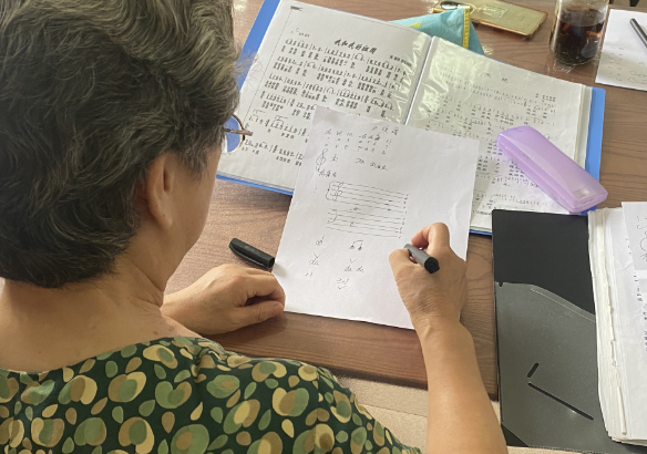 在老師的教學(xué)下,大家根據(jù)樂(lè)譜學(xué)習(xí)譜號(hào)、音調(diào)、認(rèn)識(shí)五線譜等樂(lè)理知識(shí),并在老師的帶領(lǐng)下,學(xué)習(xí)簡(jiǎn)單且耳熟能詳?shù)母枨?ldquo;我們?cè)谏鐓^(qū)有舞蹈隊(duì),經(jīng)常聽(tīng)舞曲,也對(duì)合唱感興趣,正好這次社區(qū)聽(tīng)取了大家的建議,組織開(kāi)展了本次的老年合唱興趣班,我們以參與社區(qū)活動(dòng)和事務(wù)獲得的“齊益果積分”兌換了本次的學(xué)習(xí)機(jī)會(huì),很感謝社區(qū)有這樣的好的活動(dòng)!”現(xiàn)場(chǎng)參與本次合唱班的張阿姨興奮說(shuō)道。