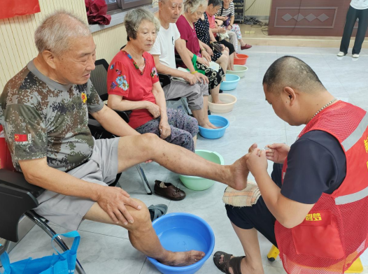 活動當(dāng)天,整個社區(qū)都洋溢著溫馨和融洽的氛圍。修腳技師們認(rèn)真細(xì)致地為殘疾老人提供個性化的修腳服務(wù)。而在活動現(xiàn)場,志愿者們也積極參與其中,為殘疾老人提供幫助和陪伴。大家圍坐一起,互相交流著彼此的生活經(jīng)歷和感受,讓殘疾老人感受到社區(qū)大家庭的溫暖和關(guān)懷。