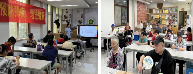 活動(dòng)前期社區(qū)利用宣傳欄、電子顯示屏、微信公眾號(hào)大力宣傳殘疾預(yù)防的相關(guān)知識(shí)?;顒?dòng)中,社區(qū)康復(fù)站治療師李莉通過圖文講解、案例分享的方式為社區(qū)居民及殘疾人講解了遺傳、發(fā)育障礙、疾病等致殘的相關(guān)知識(shí),引導(dǎo)社區(qū)居民了解預(yù)防殘疾的必要性,幫助大家提升日常自我防護(hù)能力,遠(yuǎn)離致殘風(fēng)險(xiǎn)。