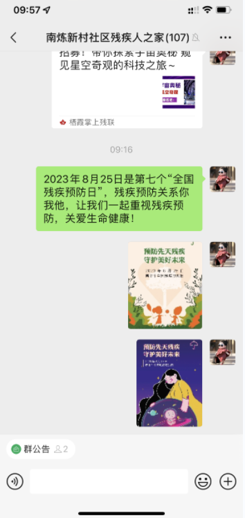 活動(dòng)前夕,南煉新村社區(qū)殘協(xié)在殘疾人之家微信群大力宣傳殘疾預(yù)防核心知識(shí),同時(shí)依托殘疾人之家等社區(qū)居民服務(wù)場(chǎng)所,針對(duì)不同群體開展定向宣傳?;顒?dòng)當(dāng)天,社區(qū)殘協(xié)的青年志愿者通過(guò)深入淺出講解一二級(jí)預(yù)防措施,以及因先天、遺傳、意外傷害等致殘的預(yù)防知識(shí),幫助居民認(rèn)識(shí)殘疾預(yù)防的緊迫性,在提升預(yù)防勝于治療、“每個(gè)人都是自己健康的第一責(zé)任人”的意識(shí)中,講述體育鍛煉、合理膳食、良好心情、健康生活習(xí)慣的重要性。