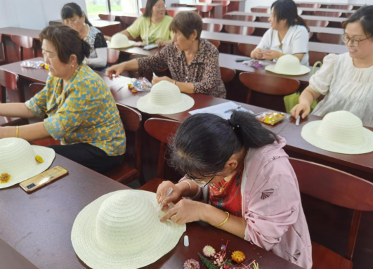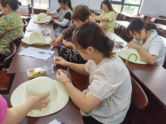 在手工制作環(huán)節(jié),工作人員為大家詳細講解了手工制作的流程。他們耐心指導(dǎo)每位參與者,保證他們能夠親身體驗并完成各種手工制作。“一粘、一貼、一按”不一會功夫,一頂頂美麗的草帽就展現(xiàn)在大家的眼前。這種沉浸式的過程不僅能夠讓殘疾人放松身心,釋放壓力,還能培養(yǎng)他們的耐心和專注力。