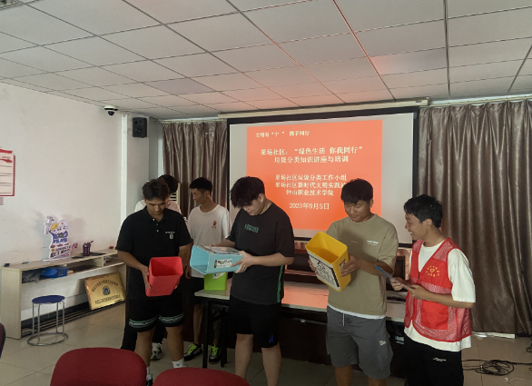 2023年9月5日,果場社區(qū)垃圾分類推進(jìn)工作小組聯(lián)合鐘山職業(yè)技術(shù)學(xué)院,依托社區(qū)新時(shí)代文明實(shí)踐站,組織社區(qū)民兵志愿者、城治志愿者、“齊益果”積分制志愿者等社區(qū)年輕居民骨干在社區(qū)三樓活動室,進(jìn)行了一場“綠色生活 你我同行”主題的垃圾分類知識講座與培訓(xùn)。