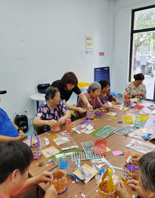 現(xiàn)場(chǎng),老年朋友們化身好學(xué)生,認(rèn)真聽(tīng)講關(guān)于制作手工花籃的要點(diǎn),趙老師一步一步細(xì)心教導(dǎo),講解注意事項(xiàng),大家用靈活的雙手,時(shí)而折,時(shí)而剪,一會(huì)兒功夫,一個(gè)個(gè)純手工“打造”的精美小花籃就初現(xiàn)成型,再用針線縫合,很快,老人拿著自己制作的成品花籃,個(gè)個(gè)都是做工精美,且形狀多樣。大家邊制作邊交流,溝通心得體會(huì),分享各自的制作靈感,拉進(jìn)了彼此間的關(guān)系,增進(jìn)了感情,手工活動(dòng)不僅有助于提高老年人的動(dòng)手能力,還豐富了大家的精神文化生活,讓老人們?cè)趭蕵?lè)的同時(shí)鍛煉了身體。