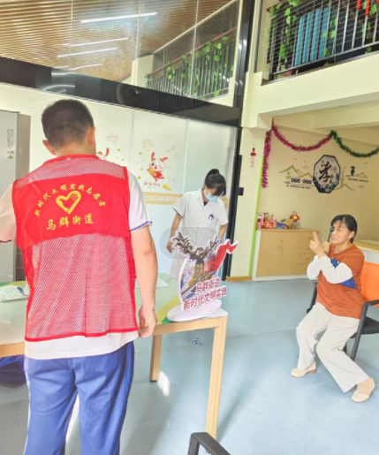 在義診現(xiàn)場(chǎng),居家養(yǎng)老及積分制志愿者為前來體檢的老年居民安排快速體檢項(xiàng)目、維持秩序,并攙扶腿腳不便的老年居民提供座椅,靜候體檢排隊(duì),協(xié)助義診醫(yī)生們?yōu)榍皝眢w檢的老年居民提供免費(fèi)量血壓、測(cè)血糖、驗(yàn)視力等服務(wù),同時(shí)耐心地詢問居民身體狀況,解答居民的各種醫(yī)療訴求問題等。