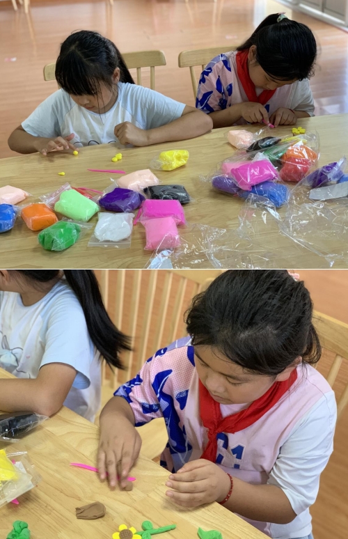 在活動現(xiàn)場,孫老師耐心地教導(dǎo)學(xué)生們?nèi)绾问褂贸壵惩林谱飨蛉湛?。孩子們手拿著小工具,眉頭緊皺,專注地模仿孫老師的動作,不斷塑造著自己的作品。他們用稚嫩的雙手捏出花瓣的形狀,用一點(diǎn)點(diǎn)粘土粘貼在一起,最后呈現(xiàn)出逼真的向日葵形象。整個過程中,孩子們沉浸在創(chuàng)造的樂趣中,展現(xiàn)出了自己的想象力和藝術(shù)天賦。