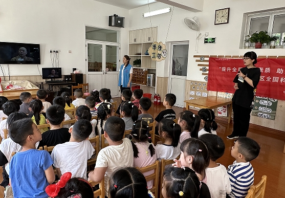 活動(dòng)現(xiàn)場(chǎng),化纖新村社區(qū)科協(xié)志愿者到化纖新村幼兒園,為幼兒園大班的小朋友們播放科技類(lèi)電影《獨(dú)行月球》,活動(dòng)中小朋友們聚精會(huì)神地觀看電影,了解科幻世界,享受科幻電影帶來(lái)的視覺(jué)沖擊與樂(lè)趣,打開(kāi)想象力的窗戶(hù)。觀影結(jié)束后小朋友們暢所欲言,分享自己心中的科幻,傳送門(mén)可以直接傳送到月球上、地球有能量防御罩直接擋住隕石沖擊、房子建在海底隨時(shí)與海洋動(dòng)物互動(dòng)等等,難掩孩子們觀影后激動(dòng)地心情。