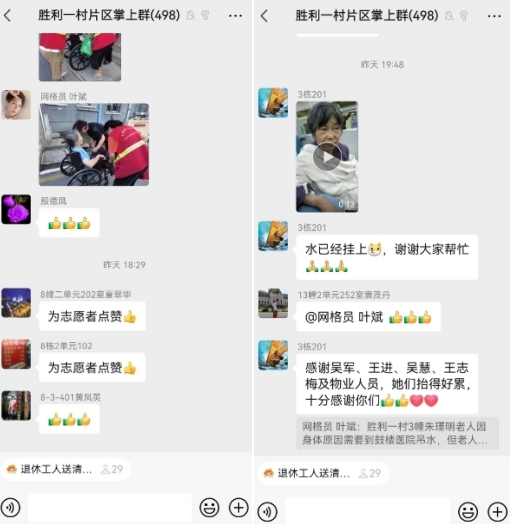 接力過(guò)程中,先評(píng)估了老人的情況并制定了詳細(xì)的行動(dòng)方案,在全體成員協(xié)作下,他們小心翼翼地將老人輕輕抬下樓,確保她的安全和舒適。這一幕溫馨的場(chǎng)景感動(dòng)了眾人,也展現(xiàn)了社區(qū)網(wǎng)格服務(wù)的零距離。在電瓷新村,每個(gè)人都是鄰居,都是家人。無(wú)論面臨何種困難,大家都會(huì)伸出援助之手,共同呵護(hù)著社區(qū)的每一位居民。社區(qū)網(wǎng)格居民群更是收到了大家的一致稱贊。