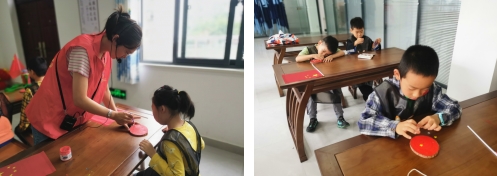 活動最后,孩子們一起制作原木片國旗畫。志愿者先為孩子們講解制作步驟,并發(fā)放制作材料。孩子們拿到材料后,在原木片上認真仔細的抹上紅色顏料,等顏料干了以后再粘上五角星,一面面原木片國旗就制作完成了,孩子手拿作品滿眼都是驕傲。什么顏色最美,當屬中國紅!