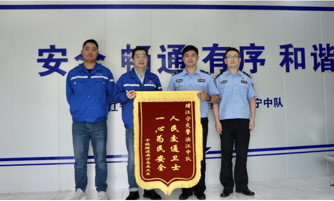 交警助寧馬,溫暖百姓心。在雙節(jié)來臨之際,中鐵隧道局集團寧馬五工區(qū)向江寧交警濱江中隊獻上一面錦旗,對全體指戰(zhàn)員辛勤地工作作風表示衷心的感謝。