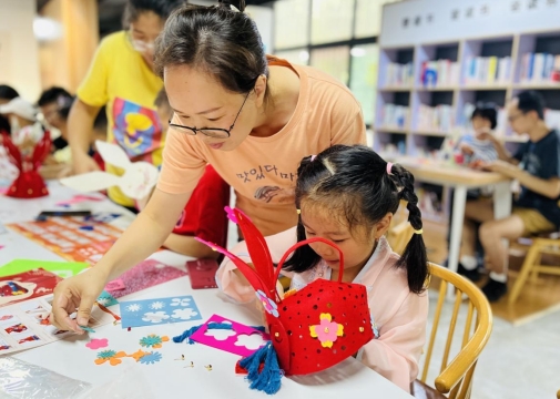 活動最后,孩子們一同動手參與制作吉祥玉兔燈和錦繡紅兔燈。在大家的互相幫助下和志愿者的指導下,一件件精美的兔子燈籠呈現(xiàn)在大家眼前。制作結束后,孩子們拿著自己的手工藝品互相展示,拍照留念,互相祝福中秋快樂。