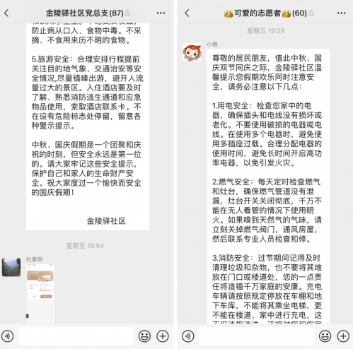 掌云宣傳“全滲透”。金陵驛社區(qū)充分利用掌上云網(wǎng)格群、微信公眾號等新媒體,每日不定時推送節(jié)日安全知識,擴(kuò)大安全宣傳的覆蓋率和知曉率。