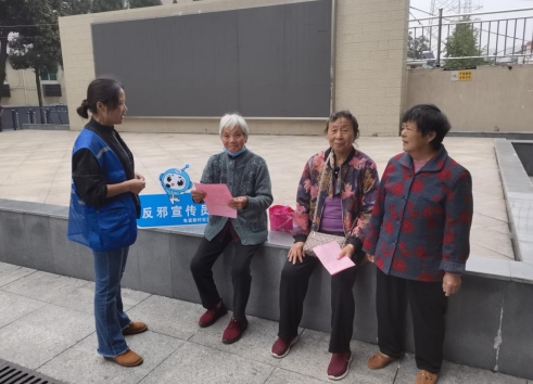 宣傳活動(dòng)中,社區(qū)網(wǎng)格員化身反邪宣傳員,在小區(qū)廣場(chǎng)向居民群眾發(fā)放反邪教宣傳彩頁,用通俗易懂語言向講解常見邪教的種類,邪教的危害、反邪教法律法規(guī)、如何防范和抵制邪教、舉報(bào)邪教的方式等相關(guān)知識(shí),仔細(xì)回答居民朋友們提出的疑問,積極引導(dǎo)他們崇尚科學(xué),遠(yuǎn)離邪教,做到“不聽、不信、不傳,從根本上、源頭上預(yù)防邪教的滋生和蔓延。