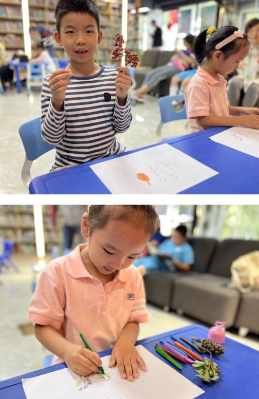 活動(dòng)伊始,老師給在場(chǎng)孩子們分享了繪本故事《秋天的勞倫斯》。該故事講述了小狐貍勞倫斯為了在學(xué)校課堂上展示自己的收藏品,和爸爸一起走進(jìn)秋天的森林,遇見(jiàn)和發(fā)現(xiàn)秋天之美的經(jīng)歷。它帶領(lǐng)孩子們領(lǐng)略了大自然在秋天的鬼斧神工般的變化,更啟發(fā)了他們發(fā)現(xiàn)生活中細(xì)微之美的能力。隨后,小朋友們介紹自己帶來(lái)的秋天收集物。孩子們帶來(lái)了各種各樣的寶貝,它們包括樹(shù)葉、松果、枯枝、彩色的秋葉等。每位小朋友都有機(jī)會(huì)向大家展示自己收集的物品,他們通過(guò)講述它們的特點(diǎn)和來(lái)源,增進(jìn)了彼此之間的了解與交流。這個(gè)環(huán)節(jié)不僅在增加了孩子們的自信心,更讓他們感受到自然界生態(tài)多樣性的奇妙之處。