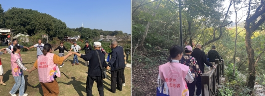 活動中,巾幗志愿者與特扶家庭來到浦口不老村進行健步走活動。在秋高氣爽的時節(jié),大家一同走近大自然、登高,,欣賞美麗的秋色。途中有老人說道:“這次登山,走進大自然,既能看風景又能鍛煉身體,還能跟大家一起游玩,真的很開心。”