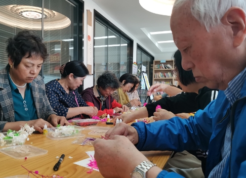 手工制作環(huán)節(jié),志愿者先給居民朋友們介紹了DIY干花相框的制作所需材料,并演示了如何粘貼制作。老人們?cè)谥驹刚叩闹笇?dǎo)下,發(fā)揮自己的創(chuàng)意,很快各種精美的干花相框便完成了。