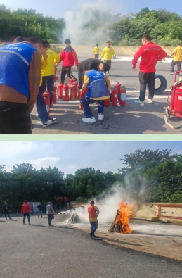 演練分為兩部分,首先開(kāi)展消防安全知識(shí)培訓(xùn),培訓(xùn)會(huì)上職工志愿者介紹了滅火器的種類和使用方法,干粉滅火器可以用來(lái)?yè)錅绻腆w類的初期火災(zāi),也可撲滅可燃?xì)怏w液體或帶電設(shè)備的火災(zāi),以及可燃液體、氣體、固體及帶電設(shè)備的混合火災(zāi)。二是進(jìn)行現(xiàn)場(chǎng)滅火演習(xí),現(xiàn)場(chǎng)工會(huì)會(huì)員們進(jìn)行了防火安全教育和消防法規(guī)宣傳,提高防火意識(shí)、掌握使用滅火器的正確方法,確保工作安全順利進(jìn)行。