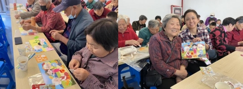 隨后在社區(qū)工作人員為老人孩子們精心準備了重陽節(jié)相關(guān)常識的手工貼畫,現(xiàn)場老人孩子們齊心協(xié)力,興趣盎然地粘貼畫,一副其樂融融的幸福場景。