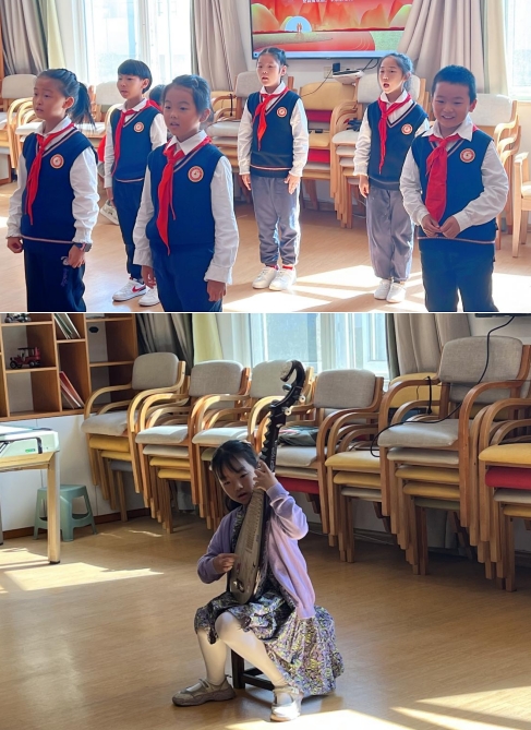 在表演過程中,還有許多小朋友們爭相上臺展示才藝。柔美的古箏曲琵琶曲、歡快的竹笛獨奏,還有及其應(yīng)景的《一剪梅》。在大合唱《半生雪》之下,在大家不約而同的掌聲之下,一股歡樂和溫暖的氛圍彌漫在整個場所。每個老人都被表演的精彩所打動,紛紛露出了開心的笑容。