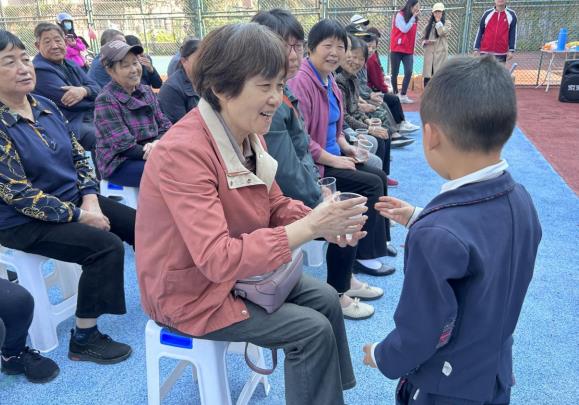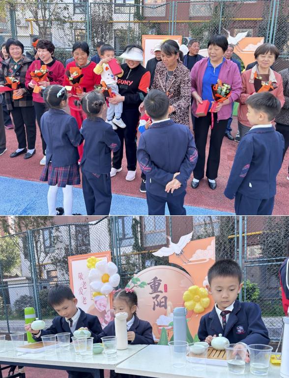 隨后,小朋友們準備的另一個驚喜令現(xiàn)場的氣氛更加溫馨。他們親手采摘了鮮嫩的菊花,將其放入熱水中泡制成菊花茶。小朋友們親自為爺爺奶奶們倒上自己泡制的菊花茶,這份親手制作的茶品充滿了他們的關愛和感恩之心。爺爺奶奶們感受到了小朋友們真摯的情感,品嘗著茶水中散發(fā)出的芬芳和溫暖。
