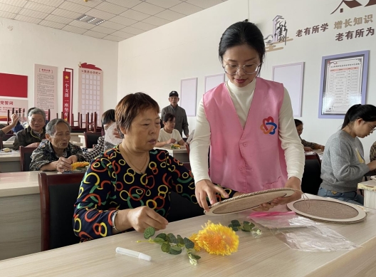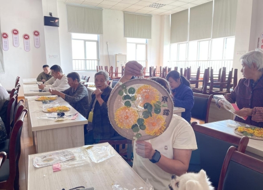 在桌子上擺放著各種麻繩、彩色布料和裝飾品,為居民們提供豐富的選擇。大家絡(luò)繹不絕,互相交流著創(chuàng)意和設(shè)計(jì)靈感。居民們積極投入制作,用心地編織和裝飾掛飾。有些人巧妙地將彩色布料剪成小花朵,然后用麻繩編織成花環(huán),裝飾在門廊上;還有人選擇用麻繩編織小魚,寓意著家庭的和諧和富饒。每一件掛飾都是獨(dú)一無(wú)二的創(chuàng)作,展現(xiàn)了居的巧思和藝術(shù)才華。通過(guò)一個(gè)小小的掛飾來(lái)裝飾自己的家,從而達(dá)到以庭院“小美”成就鄉(xiāng)村“大美”的思想。