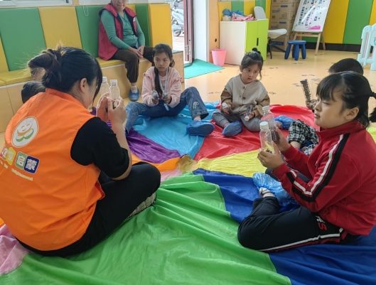 活動(dòng)現(xiàn)場(chǎng),孩子與家長(zhǎng)們圍坐成半圓,志愿者帶領(lǐng)幼兒們進(jìn)行自我介紹并相互打招呼。這個(gè)環(huán)節(jié)不僅是幼兒們展示自己的機(jī)會(huì),也是家長(zhǎng)們與其他家庭互相了解的機(jī)會(huì)。同時(shí),志愿者還帶領(lǐng)幼兒們聽音樂并進(jìn)行律動(dòng),為活動(dòng)注入了更多的活力和歡笑。