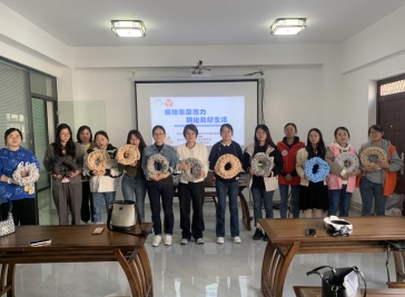 緊接著,志愿者和大家一起動手編織抱枕。志愿者首先為大家分發(fā)了提前準備好的材料,隨后大家跟著志愿者一步一步的學習如何編織。經(jīng)過志愿者的教學指導,大家輕松地學會了抱枕的制作方法,沒一會兒功夫就都制作完成了,婦女們個個都成就感十足。