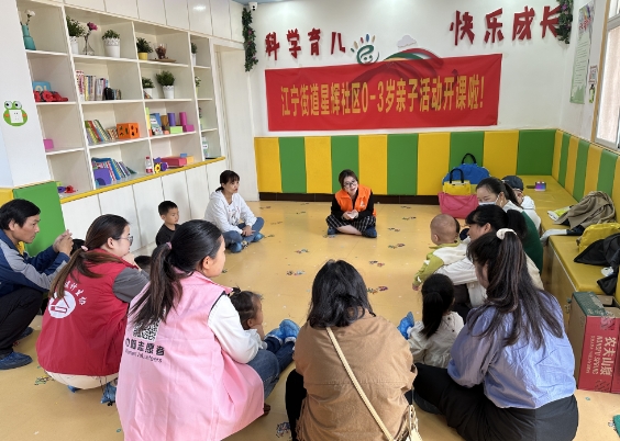 為積極落實0-3周歲嬰幼兒早期發(fā)展工作,促進幼兒身心健康和全面發(fā)展,11月5日,南京市江寧區(qū)江寧街道星輝社區(qū)計劃生育協(xié)會和婦聯(lián)在社區(qū)親子活動室聯(lián)合舉辦文藝親子活動,此次活動包括熱身活動、自我介紹、手指游戲和手工活動。