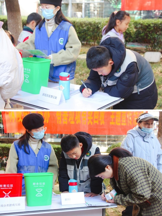 本次活動共設(shè)置4個攤位,分別是:四分類游戲互動、居民信息登記處、有害垃圾回收處、志愿者招募處。