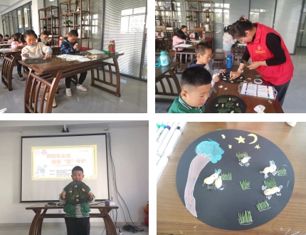 活動最后,志愿者和孩子們一起變廢為寶,一起動手制作《花生殼粘貼畫》。花生是孩子們都非常喜歡吃的食物,剝下的殼一般都作為廢物丟掉。志愿者帶領(lǐng)孩子們一起體驗用不同的材料作畫的樂趣。