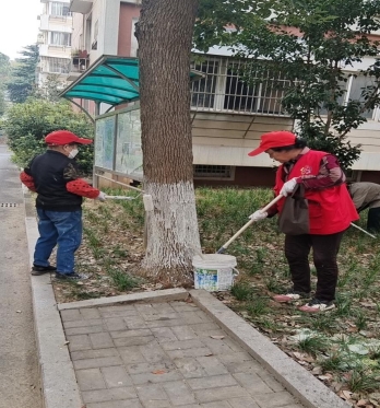 活動(dòng)中,社區(qū)志愿者們按要求給每棵樹(shù)標(biāo)定1.2米的基準(zhǔn)線,頂端纏繞紅色膠帶,然后利用生石灰、防蟲藥劑等混合配比液進(jìn)行刷白。刷白后不僅能夠防蟲防凍,還起到美化效果。在保護(hù)好樹(shù)木的同時(shí),志愿者還將林帶內(nèi)的垃圾、雜物、雜草進(jìn)行清理。大家通過(guò)分工合作,耐心仔細(xì)地為大樹(shù)披上了一件又一件健康、溫暖的白色“冬衣”,為社區(qū)增添了一道亮麗的風(fēng)景線。