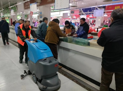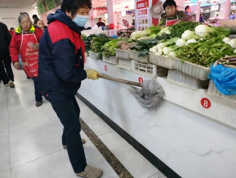 “請經營戶運菜的三輪車停放在固定的停車位上”、“請買菜的電瓶車有序的停放好”、“請不要把摘下的菜葉丟在地上,放到垃圾桶內”、“請熟食區(qū)的經營戶戴好口罩和帽子”、“請不要在市場內吸煙”……每天,西洋橋菜市場南通勁玥物業(yè)管理有限公司物管人員都會重復這樣的文明行為宣傳。