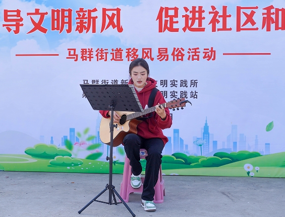 隨后,一系列精彩的文化節(jié)目如舞蹈《扇子舞》、合唱《紅梅贊》、舞蹈《新疆舞》、吉他曲彈唱、民樂(lè)演奏等節(jié)目輪番上演,每個(gè)節(jié)目都緊扣鮮明的主題,以群眾喜聞樂(lè)見(jiàn)的形式生動(dòng)演繹和深刻闡釋了新時(shí)代深入開(kāi)展移風(fēng)易俗活動(dòng)、倡導(dǎo)樹(shù)立文明新風(fēng)的重要意義,同時(shí)讓廣大居民盡情享受別具韻味的文化大餐。
